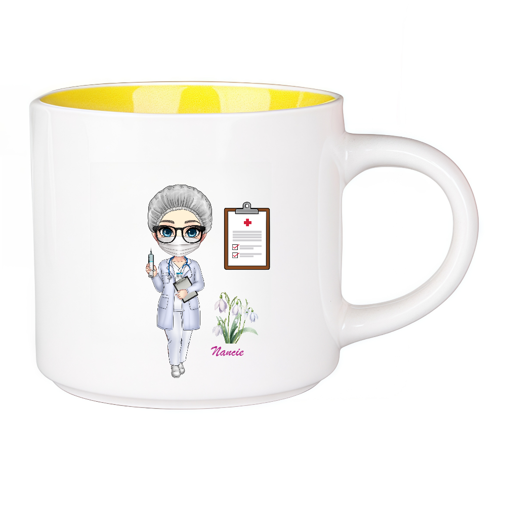 Personalized Doctor Coffee Cup Cartoon Ceramic Mug with Birth Flower and Name