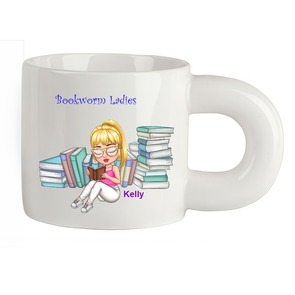 Personalized Bookworm Ladies Coffee Cup Cartoon Ceramic Mug With Chubby Big Ear Cup Name Birthday Gift for Family Friend