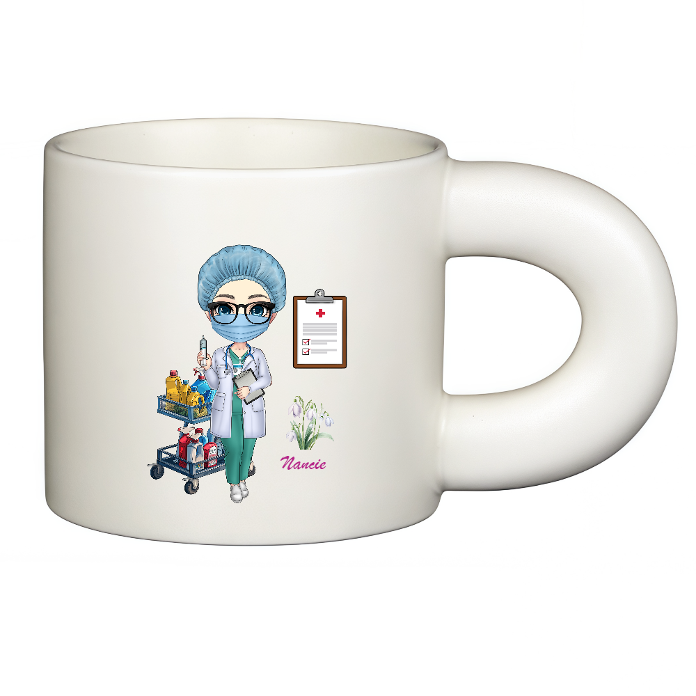 Personalized Doctor Coffee Cup Cartoon Ceramic Mug With Chubby Big Ear Cup with Birth Flower and Name