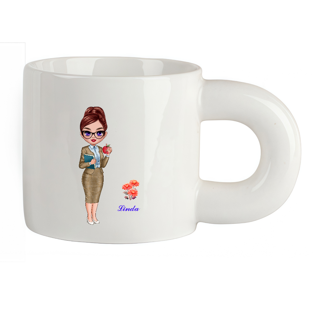 This mug has chubby big ear handle and features a customizable teacher's cartoon image,making it a meaningful keepsake,Make this mug truly unique by personalizing it with your choice of hair color, shoes color, skin, etc. for the character. You can also customize the name and birth flower to create a personalized keepsake that reflects the recipient’s style and interests.