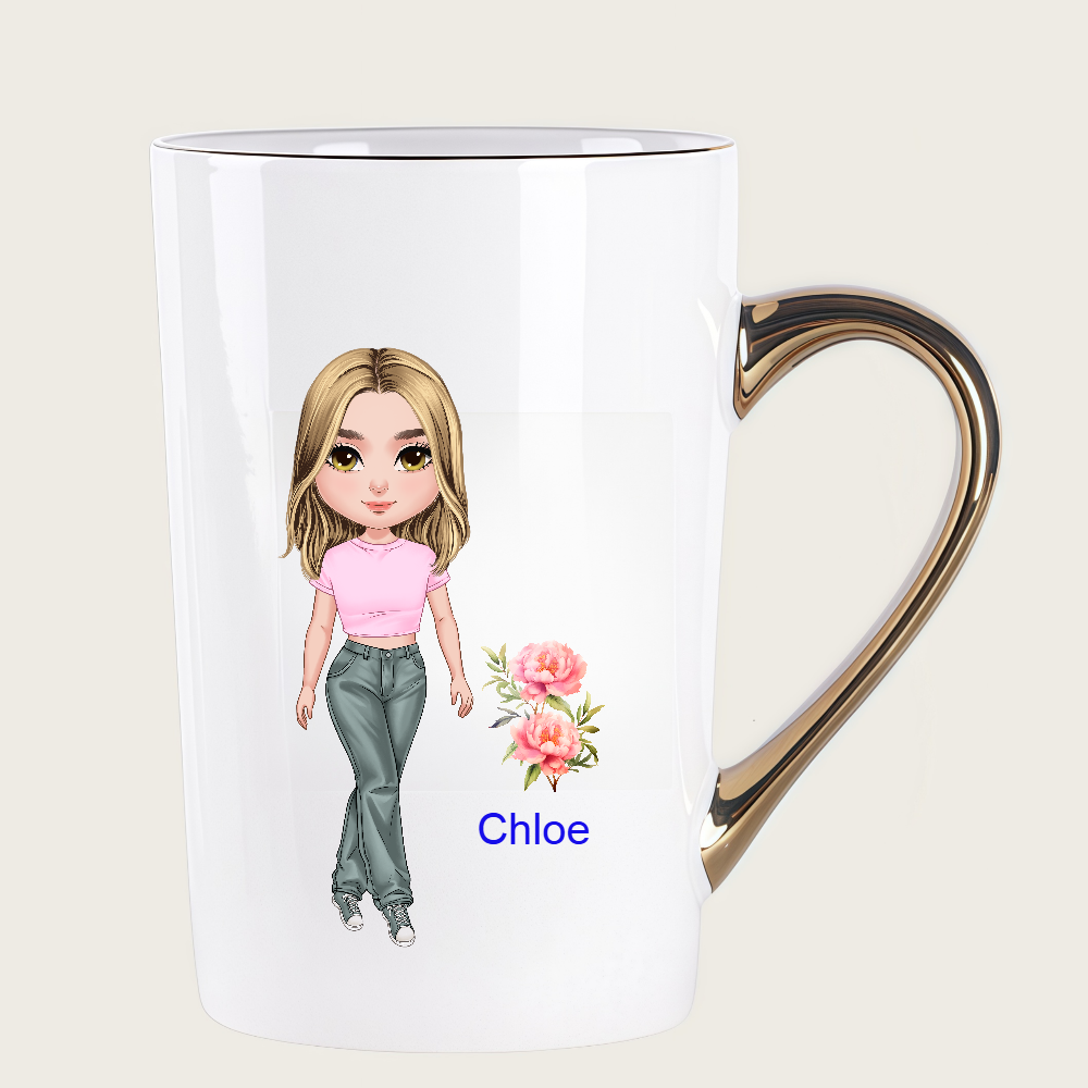 This mug features a customizable delightful cartoon character of a Chibi Girl ,making it the perfect mug for Chibi girl. Make this mug truly unique by personalizing it with your choice of hair color, shoes color, skin, etc. for the character. You can also customize the name and birth flower to create a personalized keepsake that reflects the recipient’s style and interests.