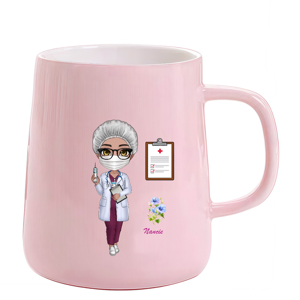 Personalized Doctor Coffee Cup Cartoon Ceramic Mug with Birth Flower and Name