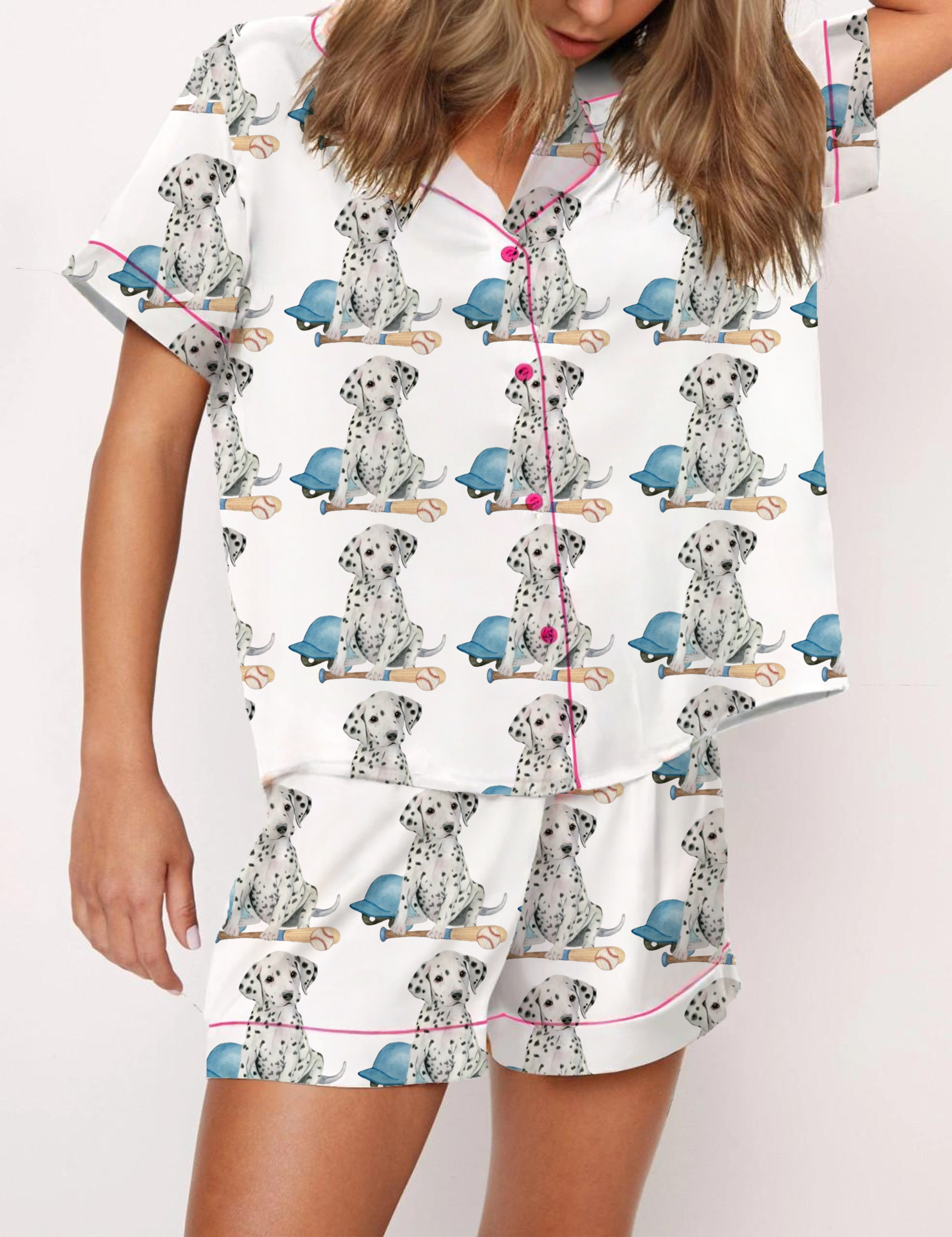 Dalmation Baseball Silky Satin Pajama Short Set For Women
