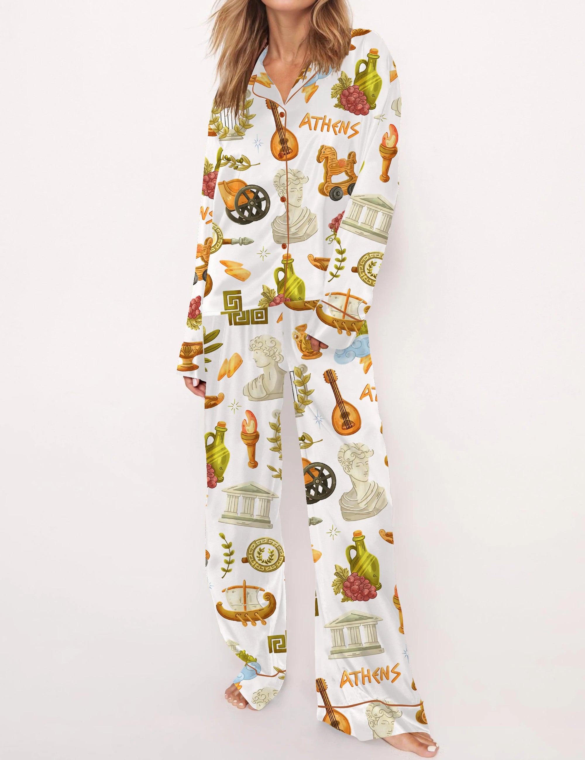 Antique Greece Satin Pajama Set For Women