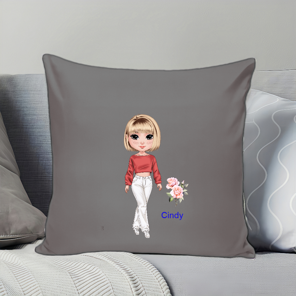 Personalized Cartoon Character Girl Soft Throw Pillow Cover with Name Birth Flower Gift for Sisters Friends