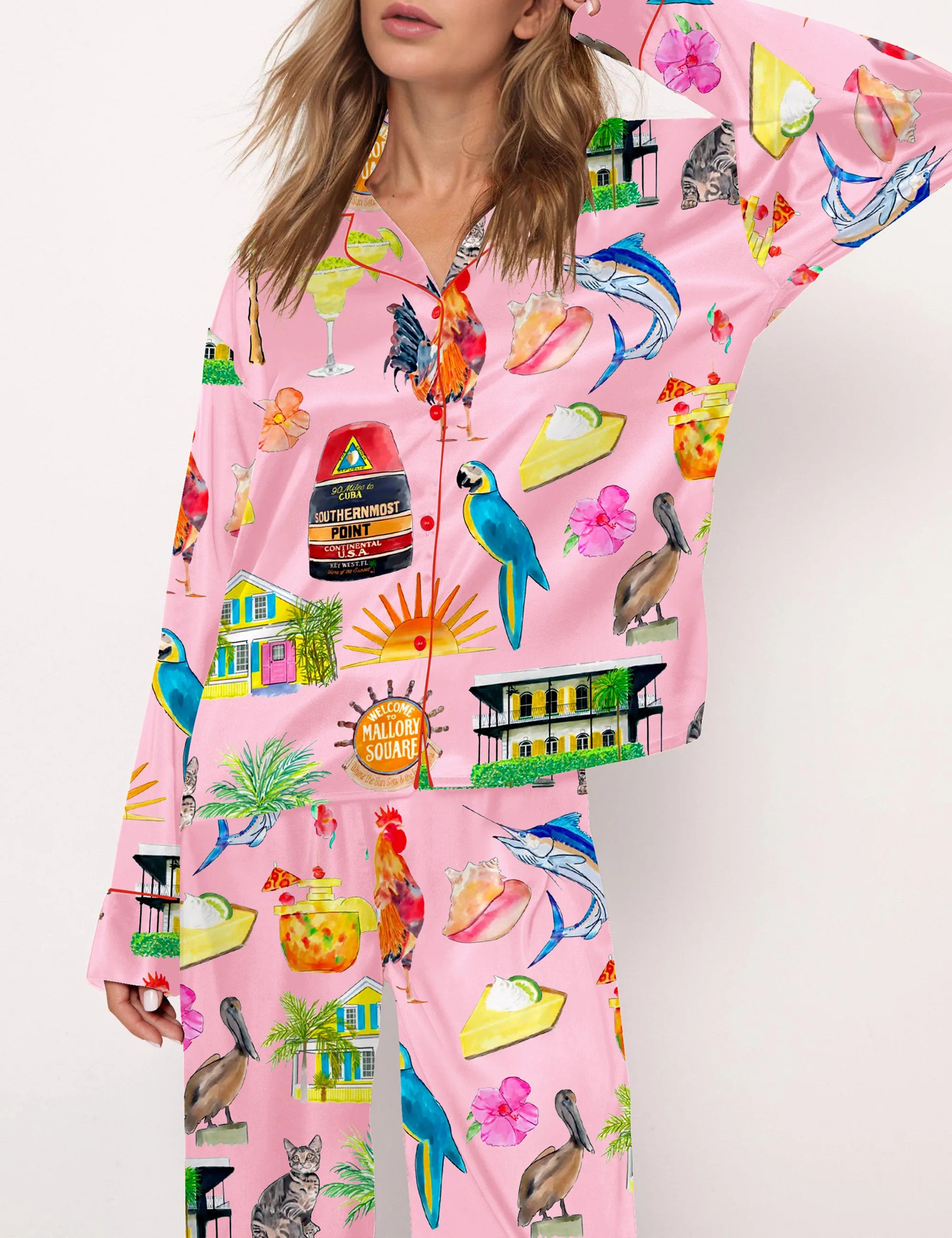 Key West Florida Travel Satin Pajama Set For Women